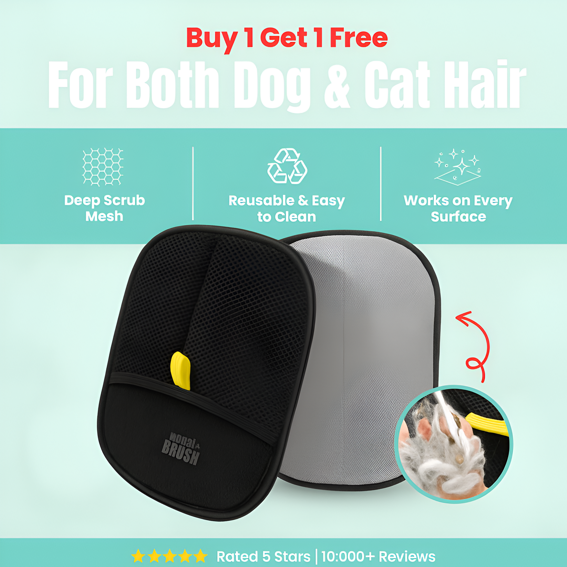 The Wonder Mitt™ works on virtually any fabric surface—carpets, rugs, upholstery, clothing, bedding, car interiors, and even pet beds. Its 360° silicone bristles grip and lift fur without scratching or snagging
